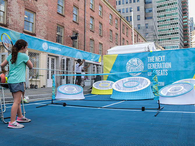The USTA wanted to create a space that would draw both kids and adults alike to stay, play and register for Net Generation. Exposure was the main objective with sign-ups a priority also. It was important to be seen and create a buzz.
